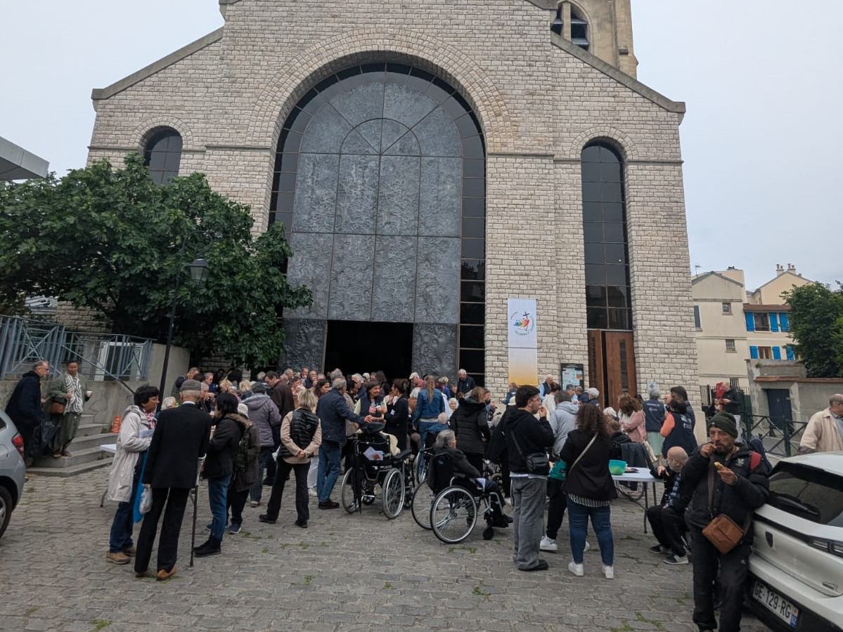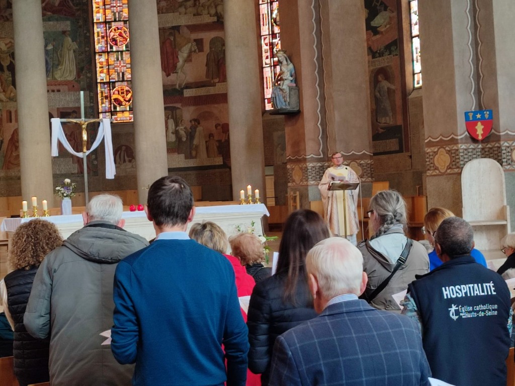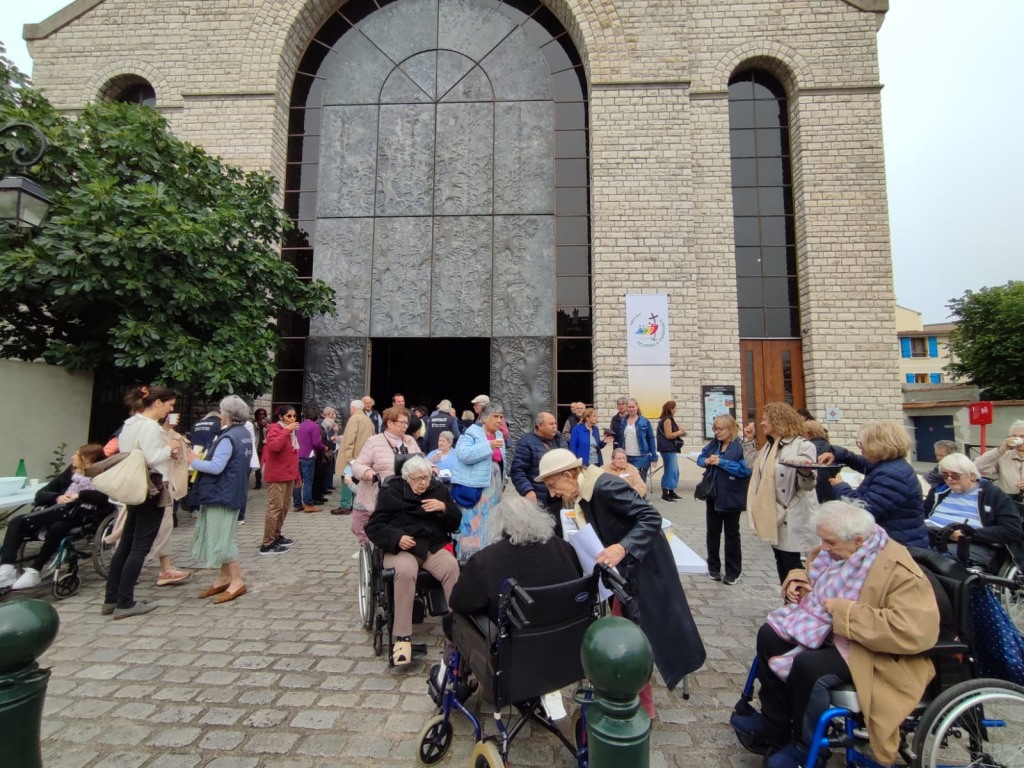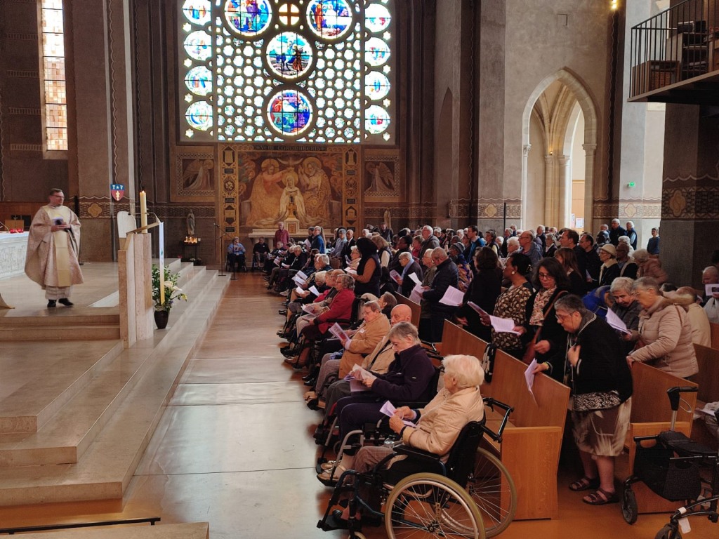 Ils étaient très nombreux, en provenance des différentes paroisses du diocèse : des paroissiens malades, en mobilité réduite et/ou en maisons de retraite (particulièrement des Vignes et de Sainte-Geneviève). Grâce à l’organisation mise en place, ils ont été accompagnés à la cathédrale pour participer à cet événement, et entourés toute l’après-midi. Merci aux nombreuses personnes qui se sont mobilisées : paroissiens, bénévoles des groupes de prière, aumônerie de Nanterre, membres de l’Hospitalité diocésaine de Lourdes, et les enfants (les « petits Samuels ») avec leurs coloriages pour les personnes âgées.