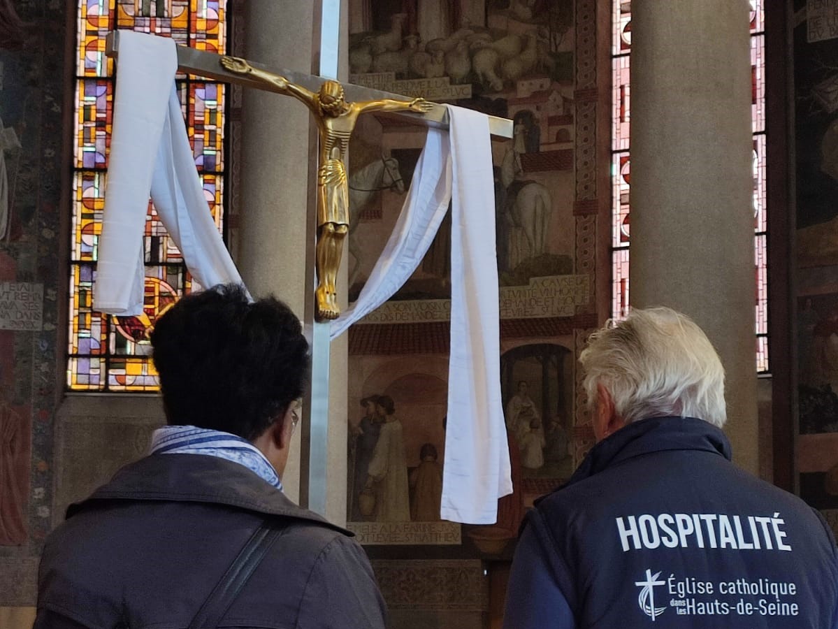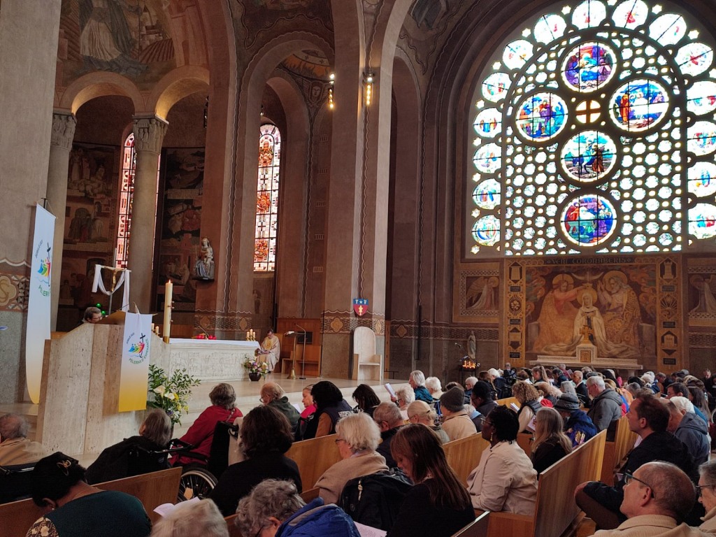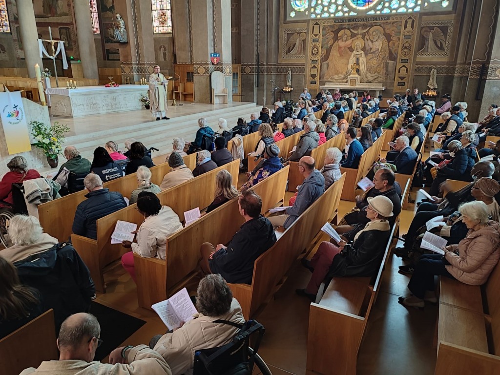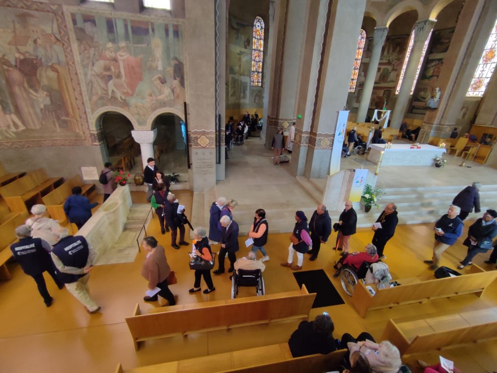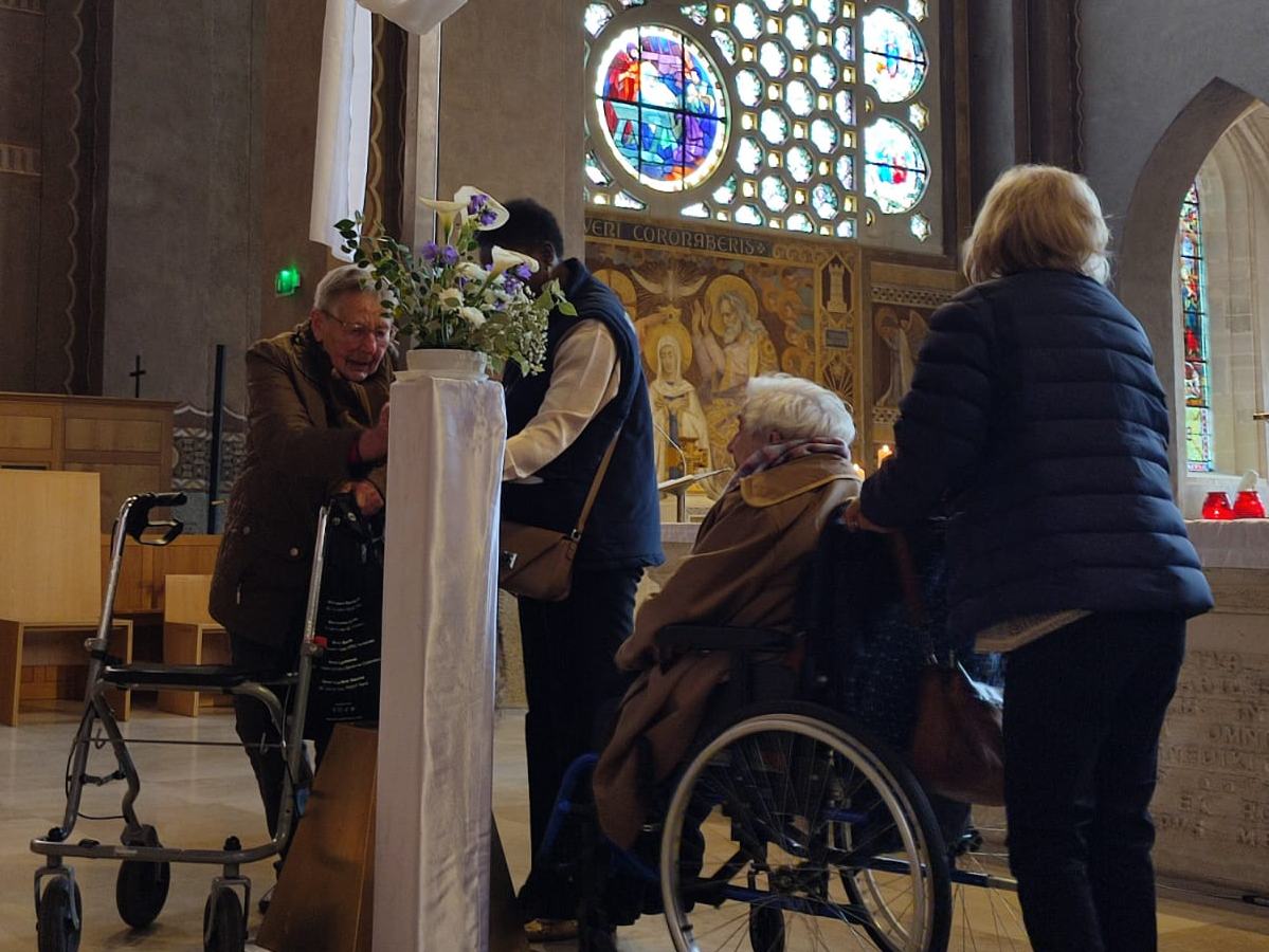 Ils étaient très nombreux, en provenance des différentes paroisses du diocèse : des paroissiens malades, en mobilité réduite et/ou en maisons de retraite (particulièrement des Vignes et de Sainte-Geneviève). Grâce à l’organisation mise en place, ils ont été accompagnés à la cathédrale pour participer à cet événement, et entourés toute l’après-midi. Merci aux nombreuses personnes qui se sont mobilisées : paroissiens, bénévoles des groupes de prière, aumônerie de Nanterre, membres de l’Hospitalité diocésaine de Lourdes, et les enfants (les « petits Samuels ») avec leurs coloriages pour les personnes âgées.